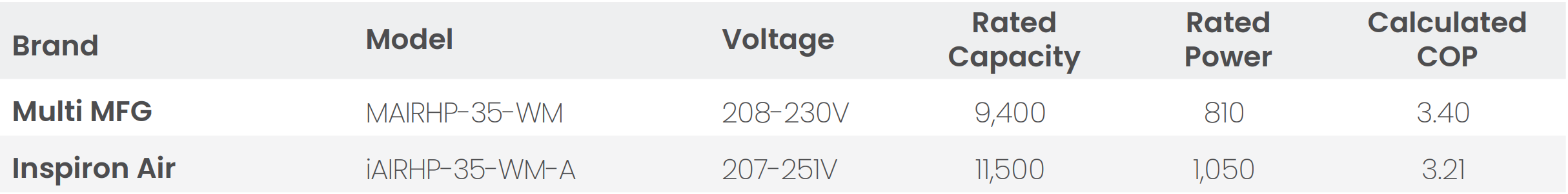 Copycat brands fake heating performance exactly the way they fake cooling performance. They publish heating capacities, COP, COP2 values, and HSPF2 ratings that contradict basic thermodynamics, AHRI 210/240 test behavior, DOE classifications, and their own watt inputs. A single hardware platform cannot legitimately produce multiple heating capacities, multiple COP values, and multiple HSPF2 results depending on which sticker is applied to the front panel, especially when the efficiencies are all similar. These inconsistencies do not come from a laboratory; they come from a spreadsheet.